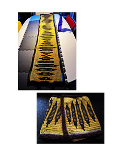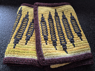 I opskriften er der en udførlig beskrivelse på mosaikhækling af tørklædet.