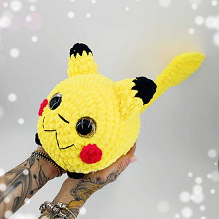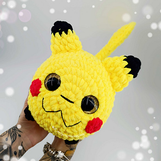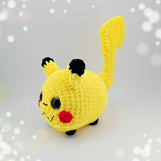 Crochet the most electrifying kitty — “PIKA,” a yellow electric-mouse–inspired cat with rosy “bolt” cheeks!