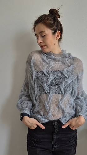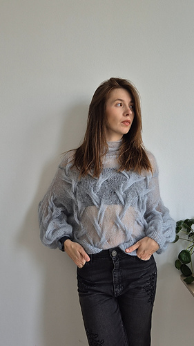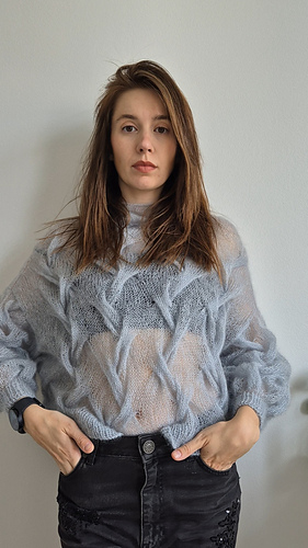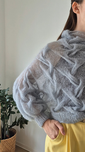 ELENA ist ein moderner, luftiger Netzpullover mit eindrucksvollen Zöpfen – ein Statement-Piece, das Leichtigkeit, Eleganz und Komfort vereint.