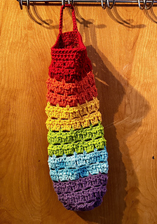 This pattern uses my unique Elevated Granny Stitch design to create a stretchable dispenser for those pesky plastic grocery bags. The pattern also includes 2 options for the opening at the bottom. Your finished product should measure approximately 11” long & 5” wide but will stretch considerably larger with bags inside.
