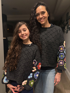 PS Eliana is my daughter-in-law, shown in one of the photos here with her daughter and wearing their versions of this sweater. These were made quite a while ago, at each of their request. But then Eliana began vigorously encouraging me to publish the pattern, because she had requests for the pattern every time she wore it.