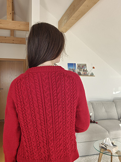 This knitting pattern guides you step by step to a classic, versatile cardigan featuring a delicate cable design. The timeless style with a round neckline and full button placket makes it a perfect companion for every season — whether worn casually with jeans or elegantly layered over a dress.
