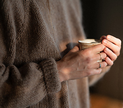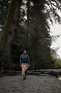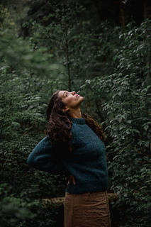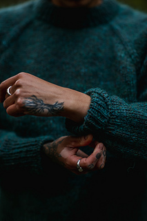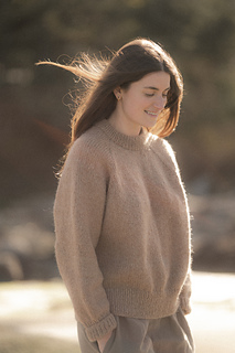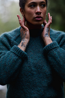 Knit from the top down, the collar is cast on using a Provisional Cast-on method, then folded in place. From here the sweater is knit from collar to hem, in the round. Short rows across the tops of the sleeves and the back neck shape the neckline so it fits neatly. The rate at which you increase on the raglan seams changes as you knit towards the armholes, creating a shapely fit. Once the body of the sweater is complete, the sleeves are picked up and decreases are made so that the wrists fit nicely.