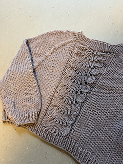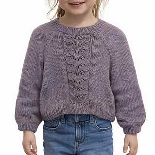 The Ella Sweater is a top-down seamless raglan sweater, worked in one piece. Its classic and timeless construction makes it a versatile garment that fits comfortably on both babies and children, allowing for ease of movement and layering. The design features ribbed edges at the neckline, cuffs, and hem, giving a snug but stretchy finish that keeps the sweater in place during everyday play and cuddles. The delicate lace design on the front adds a soft decorative look, while being simple for everyday wear.