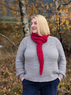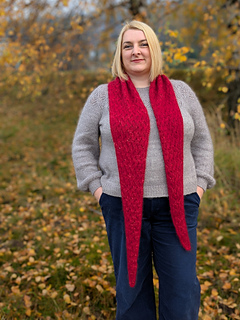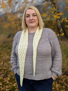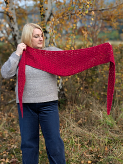 Ellorie is a sweet and charming little scarf in the shape of a long, skinny triangle. The scarf is knitted entirely using a simple, yet very effective lace pattern. The scarf is worked from tip to tip and shaped by increasing and decreasing stitches. The pattern includes instructions for two sizes, but you can easily adjust the size to suit your needs and the amount of yarn you have.