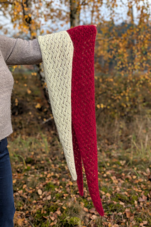 The scarf was designed for a DK-weight yarn. Select yarns with a good stitch definition.