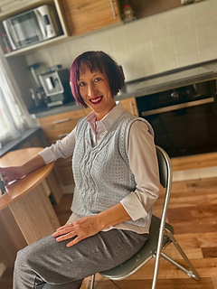 At the centre front, a striking quail cable panel follows the V-neckline and continues down the body once the neckline shaping is complete. Smaller zigzag-style cables run vertically along both sides of the garment, on the front and back, creating a balanced and elegant structure. The cables can be worked without a cable needle and the pattern is very easy to memorise.