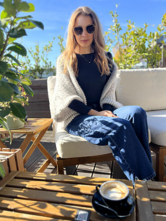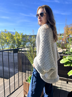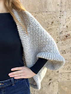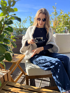 The Eloween Cocoon Cardigan is built on the kind of simplicity that feels almost magical: one large rectangular panel, folded and seamed into a relaxed cocoon shape, then finished with a soft double-folded ribbing that frames the entire body and sleeves. No shaping, no complicated construction - just intuitive steps that transform basic geometry into a cozy, atmospheric winter layer.