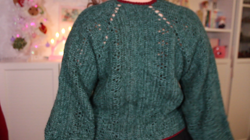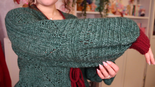The pattern is written in a free-size style, based on your own measurements and with options to extend parts of the cardigan where needed.