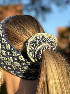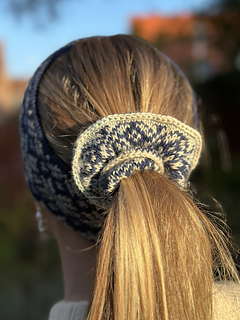 Elsa Scrunchie is a hair scrunchie featuring a Nordic-inspired star pattern. The scrunchie holds hair securely in place thanks to the incorporated elastic.