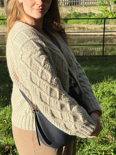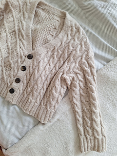 The Ember Cardigan is a cozy, textured V-neck cardigan that is knit up using a drop-shoulder construction. Its asymmetric cable pattern is a welcome challenge for experienced knitters and encourages a “just-one-more-row” mentality which makes the project fly by in no time. The cardigan is designed to have a boxy and rather cropped fit, providing a nice balance to the thicker gauge.