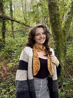 An entirely reversable scarf, including cables that twist around the edge to make an interesting twisted selvedge. The body of the scarf is knitted in moss stitch/seed stitch. The repeating pattern makes for a straightforward project that can be made as long as you wish.
