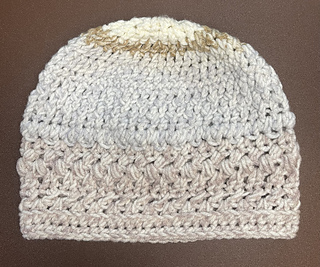 If worked with a 4 wt yarn and 6 mm hook, completed dimensions are 11” wide by 8.5” from crown to brim.