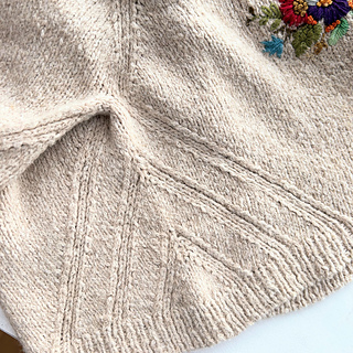 This sweater was designed specifically to let embroidery take center stage. The yarn was chosen for its neutral yet textured background, and the raglan framing is perfect for highlighting intricate images on the front.