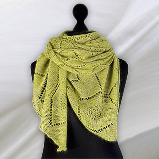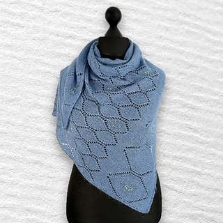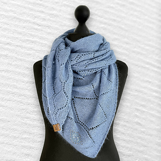 Das asymmetrische Dreieckstuch wird von unten nach oben gestrickt, die Zunahmen für die Formgebung erfolgen in den Hinreihen am linken Rand mit M1L.