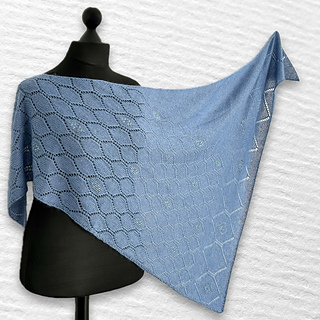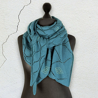 Nach dem Aufbau des Lace-Musters in der unteren Spitze entsteht durch die Zunahmen eine wachsende glatt rechts gestrickte Fläche, die dem Design nicht nur etwas Spannung verleiht, sondern zu einem ganz entspannten Stricken einlädt. Das zarte EMERALDS Lace-Muster wird nur in den Hinreihen gebildet, die Rückreihen werden stets links gestrickt.