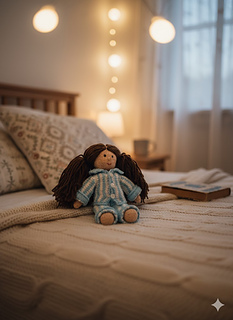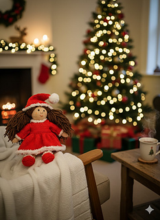 This pattern includes: EmmaLee, her underwear, pyjamas, a Christmas dress with hat, a casual outfit including jeans, a cable polo neck jumper, an outdoor outfit including a puffer jacket, hat, scarf and tiny mittens and a beautiful bag to carry it all.