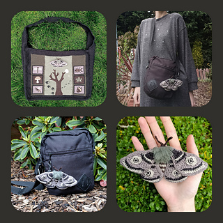 The finished moth can be sewn onto another project or used as a brooch, hair accessory, keychain, wall decoration, and more.