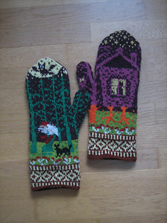 Enchanted Forest Mittens were originally published in October 2025 as a Mystery knitalong in I Make Mittens Group. These are stranded colorwork mittens with multiple colors telling a story of a Slavic folklore character, Baba Yaga, who lives in her Hut on chicken legs deep in the forest. The charts suggest 9 different colors. You can, however, use fewer or more colors.