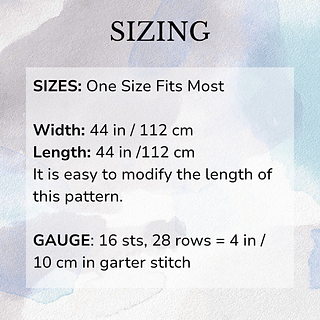 16 stitches, 28 rows = 4 in / 10 cm in garter stitch