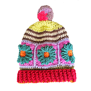 Colours: The sample hat used 10 different colours! This project is a wonderful stash-buster. The flowers can be a bit yarn-hungry, so mix and match however you like and have fun experimenting with colour combinations.