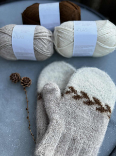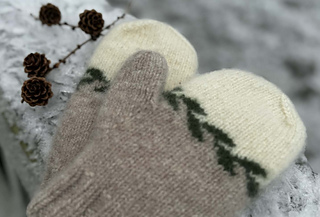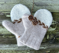 Vottene strikkes nedenfra og opp. Skal toves lett og børstes opp inni votten med en stålbørste.