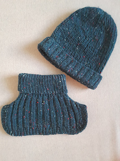 Et sett bestående av lue, hals og votter i ribb-struktur.