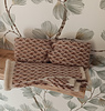 Longueur : mesurez votre tour de tête et enlevez 1 à 2 cm en fonction de la souplesse du bandeau que vous souhaitez. Par exemple, si votre tour de tête mesure 57 cm, le bandeau fera 55 ou 56 cm avant le rabattage des mailles.