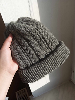 The main part of the hat is a selection of three cable styles, chosen from my moms old knitting styles book, which I discovered in her library.