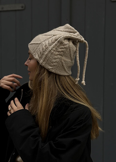 Envelope beanie is a warm, soft beanie worked in pure cashmere. The design is characterized by its envelope-like shape and the two i-cords that are tied together at the top, making it a fun, yet classic addition to any wardrobe.