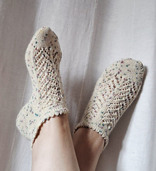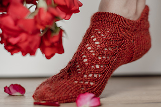 Épine est un patron de chaussettes basses, tricotées des côtes vers la pointe.