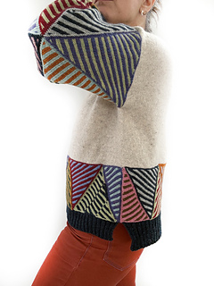 Once the panels are complete, stitches are picked up along the edges and the garment grows outward from the geometric base - an unexpected construction that is as satisfying as it looks. The 2x2 fair isle within each triangle adds depth and quiet complexity, with the stripes within each triangle meeting at sharp 60-degree angles.