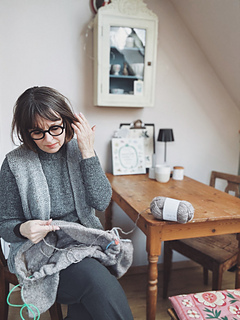 Erikka Vest is a sleeveless cardigan with V-neck that is worked seamlessly top down in rows.