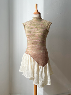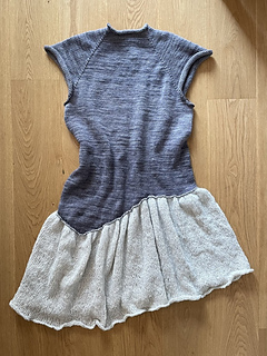 The dress is divided into a top and a skirt. The top is knitted in Handdyed by Charlotte Spagner’s Organic Merino 225, whose natural elasticity provides a comfortable and close fit. The skirt is worked in Handdyed by Charlotte Spagner’s Fluffy Alpaca Mix, chosen for its lightness and softness, which give the dress an airy and elegant look. The yarn is soft, warm, and breathable, making the dress versatile – it can be worn on its own on warmer days or styled with trousers and a blouse underneath when it’s cooler.