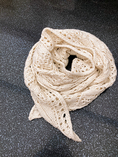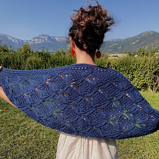 Le tricot est rendu très dynamique par le motif en dentelle et le jeu d’augmentation puis de diminutions. Même au plus large, le nombre de mailles reste modéré.