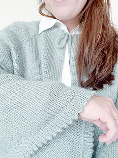 It’s knitted holding two strands together of Alpaca Silk from Hobbii, a soft yarn that becomes a beautifully warm worsted-weight fabric when doubled. The result is a garment that feels luxurious, drapes beautifully, and keeps you comfortably wrapped up all season long.