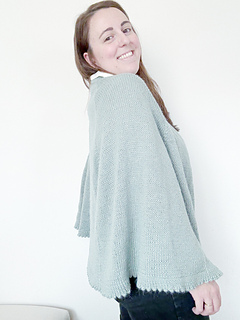 Se teje de arriba hacia abajo, con un borde de piquitos donde se inserta un cordón I-cord para ajustar el cuello, con aumentos raglán y puntos deslizados en la parte inferior “sin aumentos” para continuar la línea creada por las puntos del raglán.