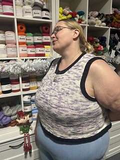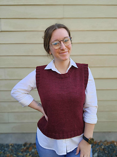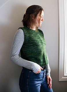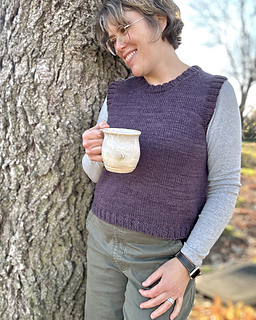 The Ever After Vest is a cute, oversized vest in the same style as the Ever After Sweater. It has a crew style neckline with a picked up collar, and is worked top down (flat for the armhole shaping, then in the round for the remainder of the body) with a sloped shoulder construction. The collar, cuffs and bottom edge have a 2 x 2 ribbed hem. The vest is worked to an upper bust measurement during the armhole shaping section, and then some additional increases are worked during the beginning of the body section to reach full bust measurements. The vest is designed to fall to a slightly cropped level. The pattern is intended to be a boxy fit, but has options for waist shaping if desired, as well as adding extra length as needed for the body. This is a size inclusive design, written for 11 sizes (30-70 inch / 75-175 cm finished bust, in 4 inch / 10 cm increments) and designed for 2-6 inches / 5-15 cm of positive ease.
