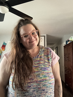 -I recommend swatching both in the round and flat, as parts of the vest are knit flat before joining in the round. If your flat gauge is significantly different than your round gauge, you can adjust needle size for the flat portion.
