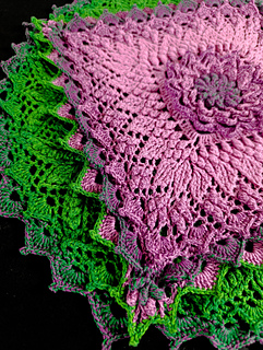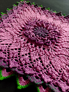 Your tension will determine things like hook size, yardage, finished size, and height of stitches. Any of these things can be adjusted as needed. Using recommended thread and hook this pattern will use minimum 370 yards / 350 metres of thread. And your finished doily will be about 10x10” / 25 x 25 cm.