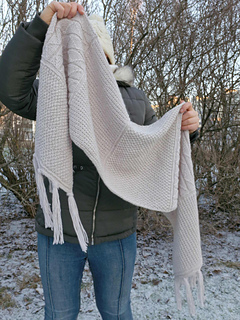 Kuvan huivi on neulottu Drops Fiesta langasta mutta testineulojat neuloivat huivin myös Novita wonder wool dk langasta ja Novita 7 veljestä langasta.