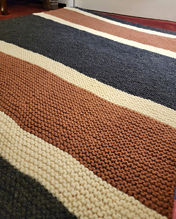 The Every Now & Then striped blanket is knit entirely in garter stitch using super bulky #6 weight yarn and US 13 knitting needles. It’s easy to knit and beginner friendly!