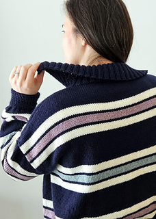 Everyday Drift is knit from the bottom up, beginning at the lower hem and worked in the round to the armholes, where front and back are worked back and forth separately to the shoulders. Shoulders are joined, then sleeves are picked up directly from the body and shaped with short rows before being knit in rounds down to the cuff. The neckline is finished with an applied ribbed placket and a collar worked in graduated needle sizes to encourage natural flare.