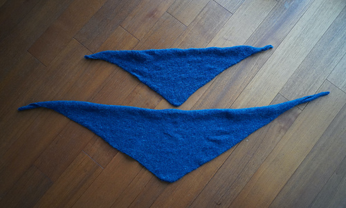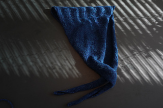 Starting at one narrow end of the triangle, stitches are increased along one edge to shape the scarf to its widest point, then decreased toward the opposite end.