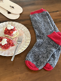 Notions: Tapestry needle for weaving in ends and for Kitchener stitch method and stitch markers.
