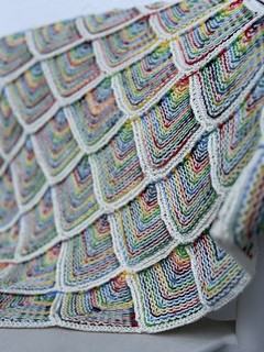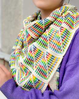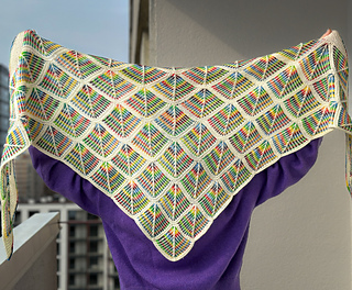 Exotic Rainbow is a celebration of geometry, movement, and the joy of color. This shawl uses a rhythmic modular construction to build a striking triangular silhouette that showcases the vibrant interplay of hand-dyed yarns.