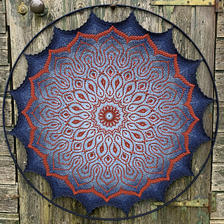 Yarn needed: if you are using yarn similar to Sultan Deluxe Shine, you will need 1000 meters for the background and about 800 meters for the pattern and 2.5 mm hook. The size of my sample is 34”, the size of your mandala will depend on your yarn, hook and tension. I recommend having the mandala finished before ordering the hoop. I bought my hoop at eFavormart.com
