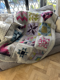 In this design, I have used all 12 blocks from the book Patchwork Granny Square Blankets. It’s a great way to try out all of the designs and showcase them in a modern version of a sampler blanket.