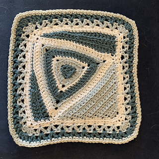 This fun, whimsical square is made using 7 colors to add a great affect showing off the details for The Eye of the Storm… Basic stitches create a great look!