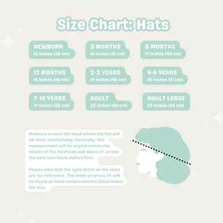 • Newborn to adult large (9 sizes)